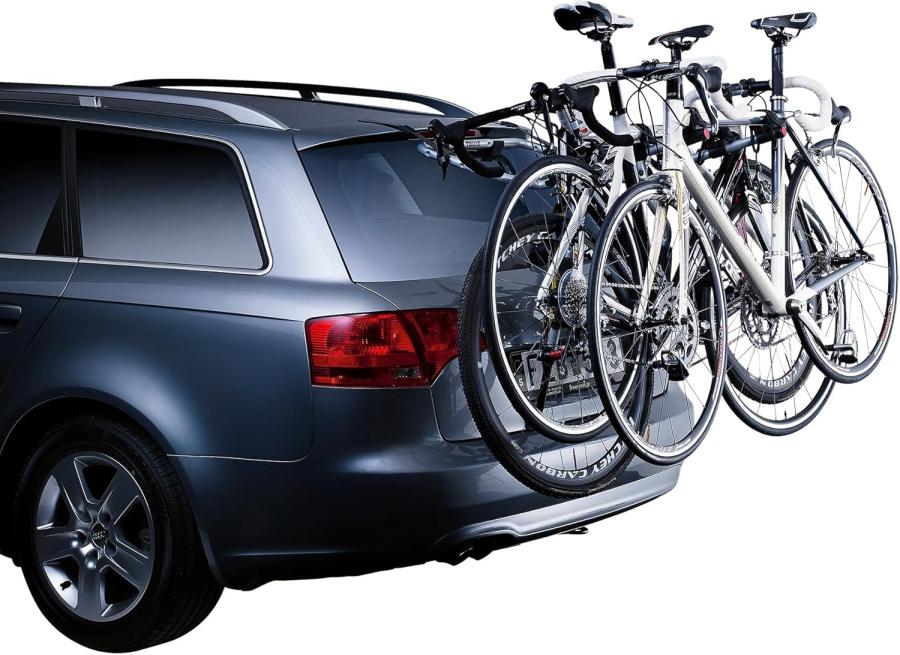 Dettagli: Portabici da portellone posteriore per 3 bici, ideale per station wagon ed auto due volumi. Si monta facilmente su numerosi modelli di auto grazie all'esclusivo sistema di fissaggio Snap-On (per l'elenco delle vetture compatibili consultare la Guidaall'Acquisto Thule o il sito www.thule.com). Massima protezione durante il trasporto in quanto tutte le parti a contatto con auto e bici sono rivestite in gomma antigraffio. Robuste cinghie per il fissaggio delle bici in dotazione. Completamente ripiegabile per semplificare rimessaggio e trasporto. Facile accesso al bagagliaio con il portabici e le bici montate. Possibilità di assicurare le bici al portabici grazie al cavo antifurto opzionale cod. 600000538. Compatibile con l'accessorio portatarga con luci cod. 600000976. Adatto per telai con tubi di qualsiasi dimensione. Portata: 45 kg. Dimensioni: 82 x 57 x 116 cm (18 x 57 x 117 cm chiuso). Peso: 7,1.
