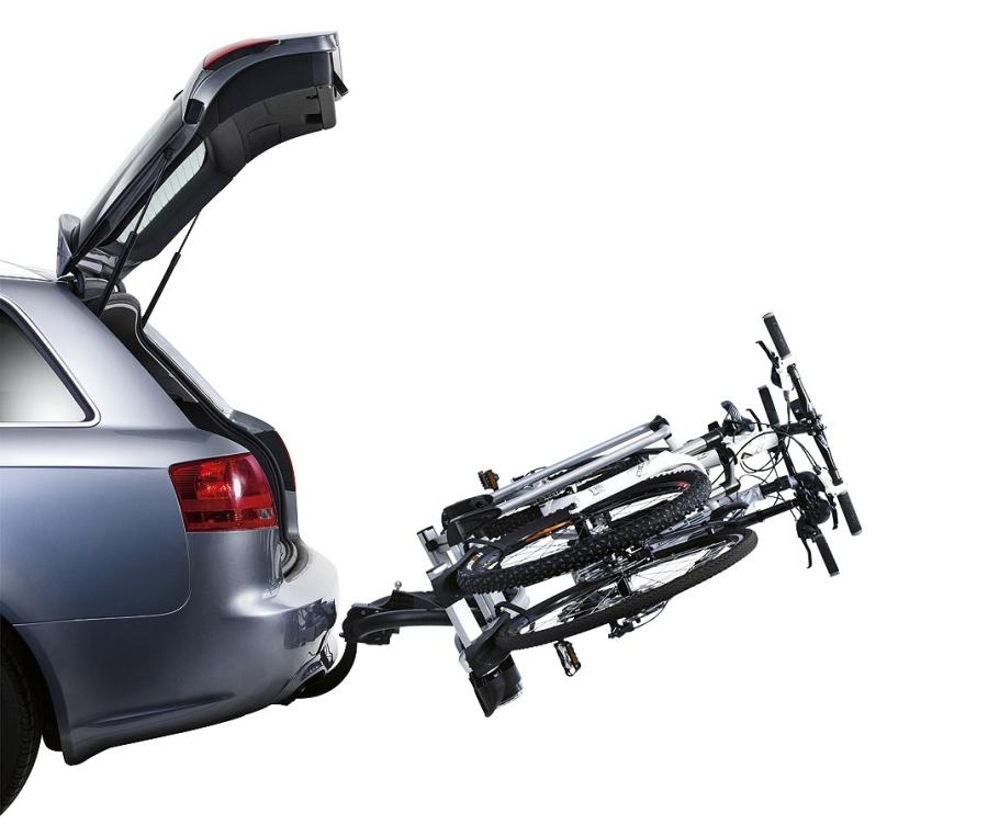 Portabici da gancio traino compatto e leggero, in grado di trasportare fino a 3 bici. Estremamente semplice da montare sull'auto grazie al sistema di fissaggio regolabile con una sola mano e con forza di chiusura ridotta. Provvisto di bracci blocca telaio rimovibili per agevolare il carico delle bici e cinghie regolabili con cricchetto per un fissaggio semplice e sicuro delle ruote (con pneumatici larghi fino a 2.35"). Con pratica funzione basculante a pedale per accedere facilmente al bagagliaio anche con le biciclette montate. Antifurto grazie alla doppia serratura, bici su portabici e portabici su gancio traino. Semplice da richiudere e riporre nella maggiorparte dei bagagliai. Compatibile con telai aventi tubi di diametro 22-80 mm. Distanza tra le canaline poggiaruota: 19 cm. Interasse max bici: 125 cm. Portata: 51 kg. Peso max di ogni bici: 24 kg. Peso: 16,5 kg. Spina elettrica a 13 poli. Conforme alle norme City Crash.