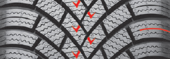 Struttura a lamelle multiple sulla spalla e centro battistrada - Applicando diverse strutture lamellari sulla spalla e sul centro battistrada, si migliora l'aderenza